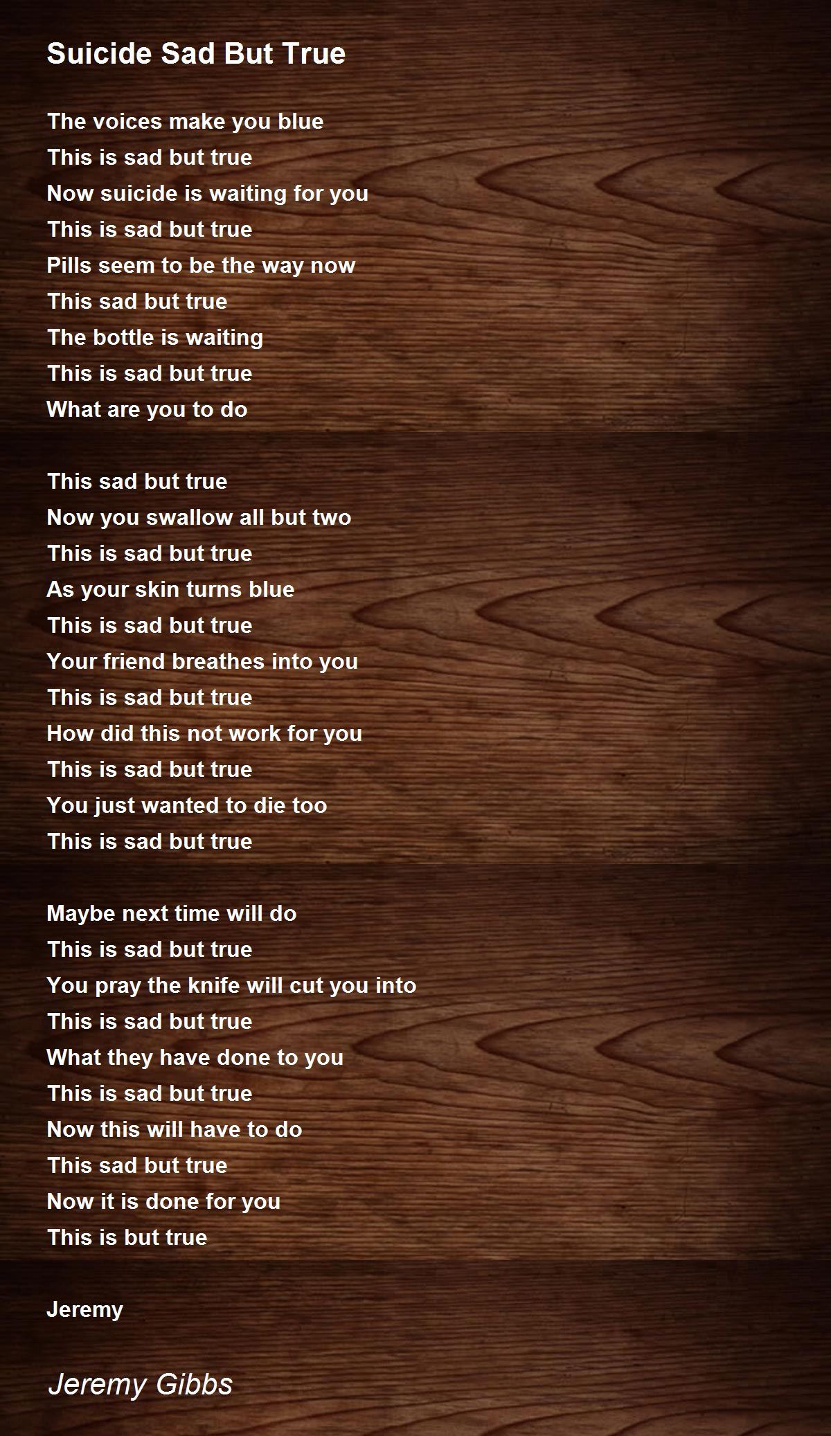 Suicide Sad But True Poem By Jeremy Gibbs - Poem Hunter